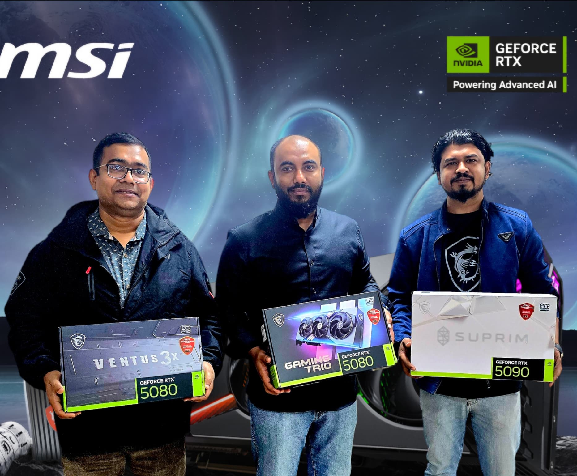 ডেস্ক রিপোর্ট: বিশ্বের সাথে তাল মিলিয়ে বাংলাদেশেও আজ থেকে MSI “NVIDIA GEFORCE RTX 50” সিরিজ গ্রাফিক্সকার্ডের আনুষ্ঠানিক বাজারজাত শুরু করলো ইউসিসি। বাংলাদেশের বাজারে আইটি পণ্যের অন্যতম সেরা পরিবেশক প্রতিষ্ঠান ইউসিসি এক সংক্ষিপ্ত আয়োজনের মাধ্যমে “MSI GEFORCE RTX 50” সিরিজ গ্রাফিক্সকার্ড গুলোর আনুষ্ঠানিক মোড়ক উন্মোচন করেন। MSI এর নতুন এই সিরিজ গ্রাফিক্সকার্ড গুলোর মোড়ক উন্মোচন অনুষ্ঠানে উপস্থিত ছিলেন, MSI বাংলাদেশ এর প্রোডাক্ট এন্ড মার্কেটিং ম্যানেজার, জনাব তৌহীদ হোসেন, MSI বাংলাদেশ এর প্রোডাক্ট ম্যানেজার, জনাব হুমায়ুন কবীর, ইউসিসির ডিজিএম এন্ড হেড অফ প্রোডাক্ট ম্যানেজমেন্ট, জনাব জয়নুস সালেকিন ফাহা্দ, এজিএম- প্রোডাক্ট ম্যানেজমেন্ট, জনাব নুরুল আলম ভুইয়া মিনার সহ আরো অনেকে।