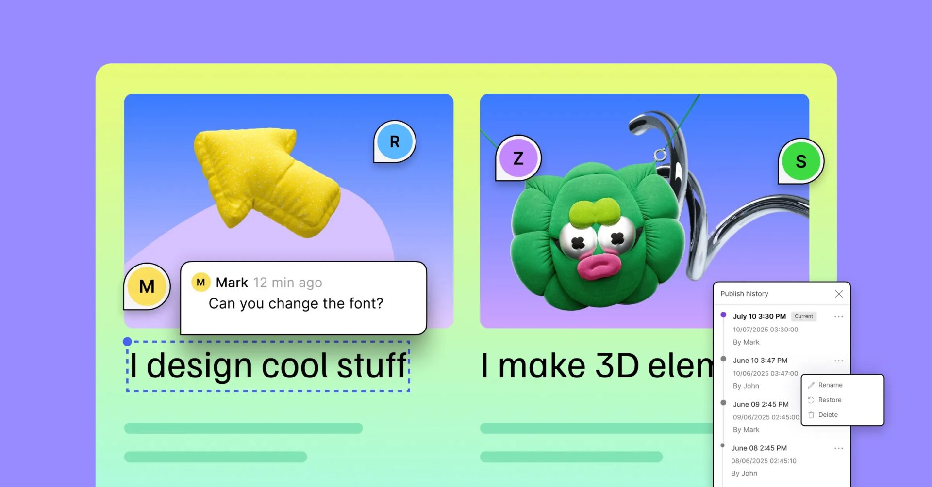 রিয়েল-টাইম কমেন্টস ফিচারের মাধ্যমে টিম সদস্যরা সরাসরি ড্রইপ এডিটরে নির্দিষ্ট ডিজাইন এলিমেন্টে ফিডব্যাক দিতে পারবেন। ট্যাগিং ফিচার ব্যবহার করে নির্দিষ্ট সদস্যকে উল্লেখ করা যাবে, যা যোগাযোগকে আরও স্পষ্ট করে।