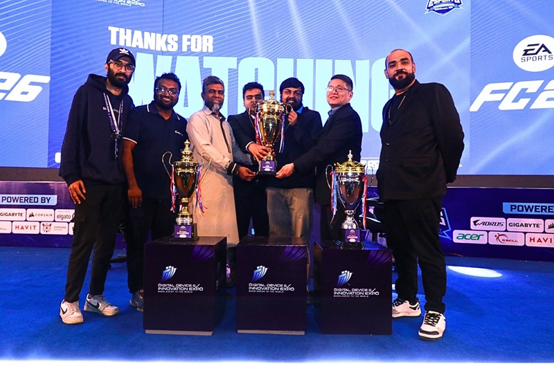 শুক্রবার (৩০ জানুয়ারি) রাতে ডিজিটাল ডিভাইস অ্যান্ড ইনোভেশন প্রদর্শনী প্রাঙ্গনে আয়োজিত ই-স্পোর্টস চ্যাম্পিয়নশিপ প্রতিযোগিতার বিজয়ীদের হাতে শিরোপাসহ মোট চার লাখ টাকার পুরস্কার তুলে দেওয়া হয়।